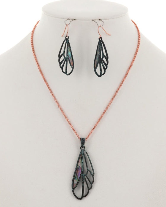 Abalone Wing Patina Necklace/Earring Set